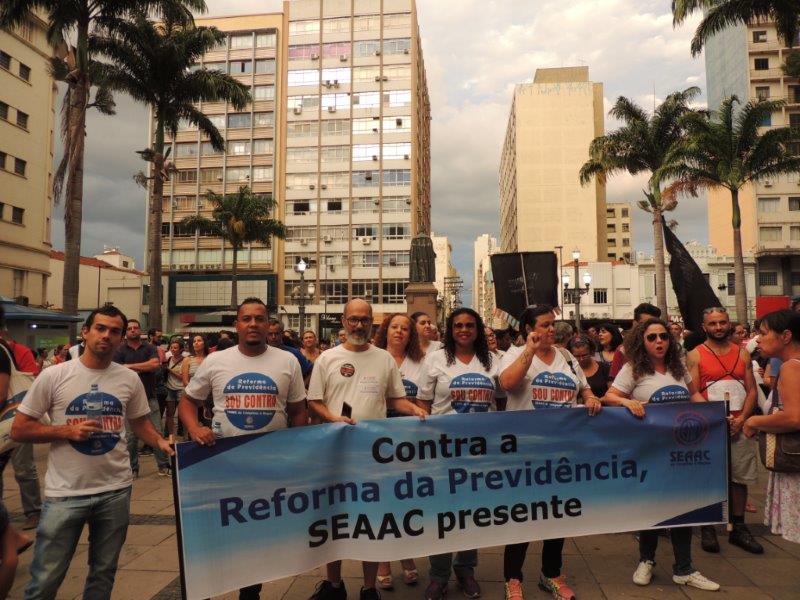 Em Campinas, cerca de 2 mil pessoas participaram de manifestação no centro da cidade e cerca de 15 mil alunos ficaram sem aula devido à grande adesão dos professores ao protesto. Houve protesto em toda a região. Em Paulínia, petroleiros interditaram rodovia no período da manhã contra a reforma da previdência. A diretoria do SEAAC Campinas e Região compareceu em peso, a Presidente, Elizabete Prataviera, a Secretária Geral, Anna Carolina Delfino Hipólito de Moraes, o Secretário de Negociações, Marcos Aparecido Emídio, o Secretário Social e de Formação Sindical, Valter Ribeiro da Silva, a Secretária da Mulher, Criança e Adolescente, Luciana P. Franco, o diretor Felix Bueno Fernandes Júnior e a Conselheira Fiscal, Fernanda Aparecida Urbano Lucchesi além dos advogados Dra. Priscilla Bittar e dr. Ian.