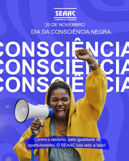 A Diretoria do SEAAC Campinas e Região informa que não haverá expediente durante o feriado prolongado da Consciência Negra, feriado nacional. O Sindicato estará fechado nesta quinta e sexta-feira, dias 20 e 21 de novembro e retomará o funcionamento normalmente, na segunda-feira, dia 24 de novembro, a partir das 8h30.